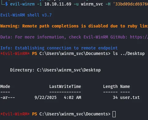 [*] Targeting user 'winrm_svc'